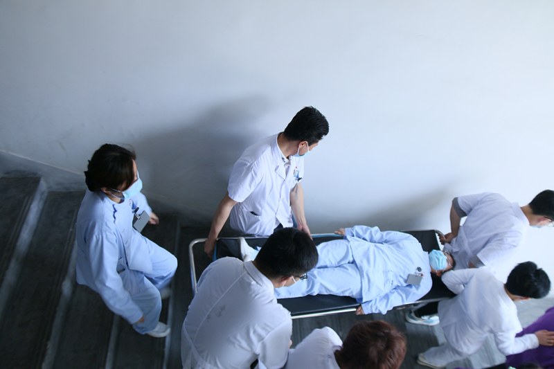 各院区的医务人员和养老老人用毛巾捂鼻,弯腰、服从指挥,沿着逃生路线靠墙行进;灭火组负责扑灭火源;警戒组、支援组和疏散组及时维护现场秩序,疏散人员;救护组对受伤人员进行抢救,各个岗位的工作者也各司其职,保障人员的安全。